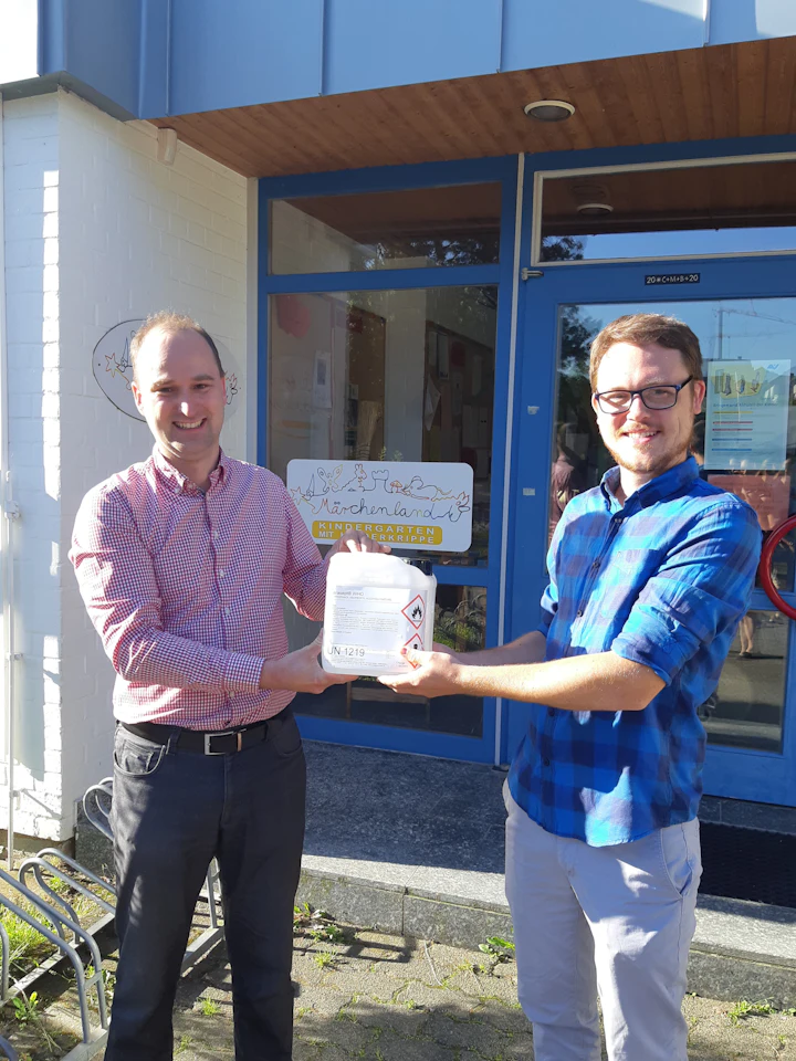 The STOCKMEIER Group with headquarters in Bielefeld is the fourth largest chemicals dealer in Europe and itself a manufacturer of disinfectants. Contact with the Sulzbach kindergarten was established through Key Account Manager Marcus Krebs, who himself visited the facility 30 years ago.